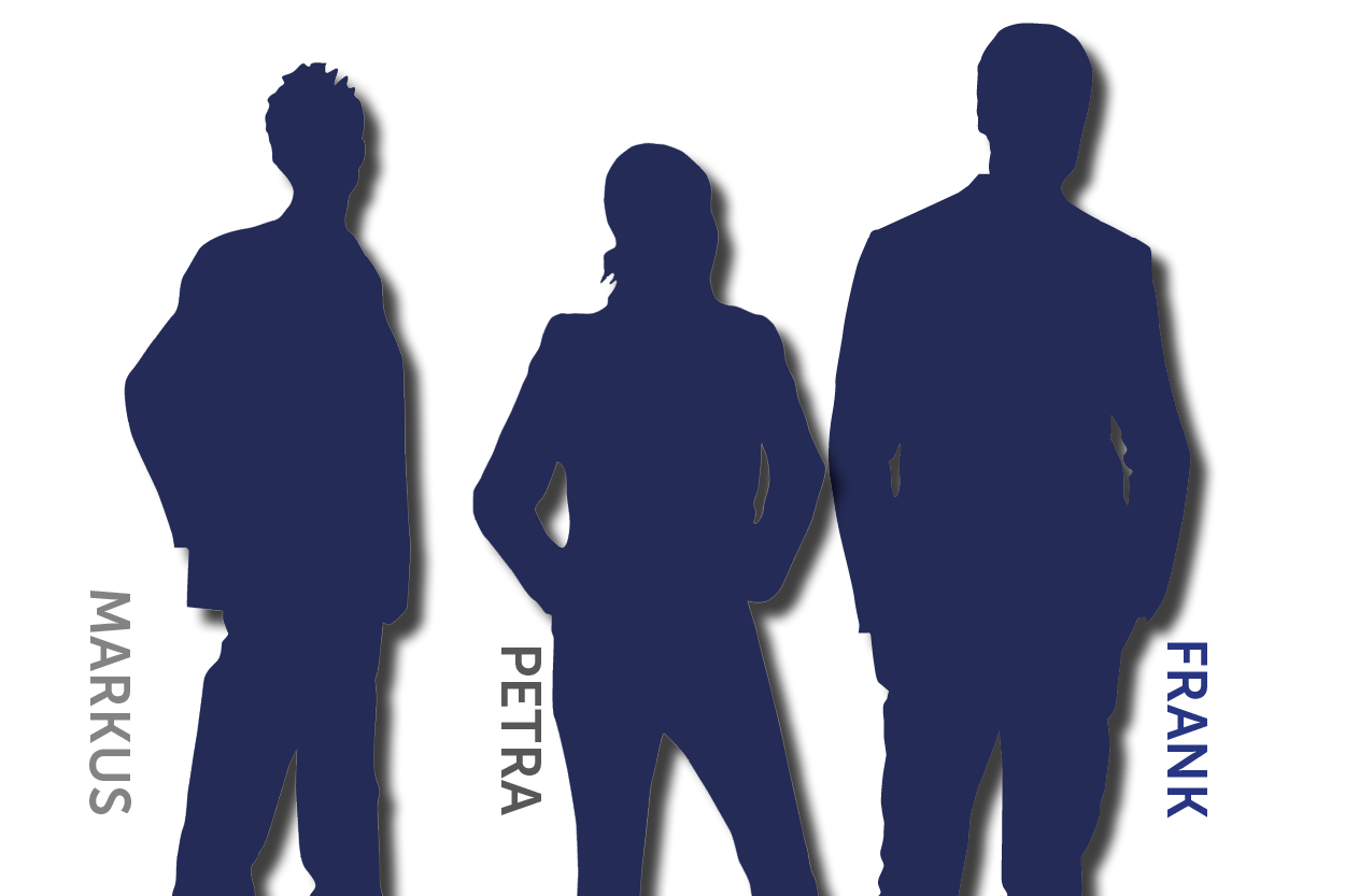 Die drei Hauptakteure mit direktem Kundenkontakt stehen im Mittelpunkt und begleiten die Kunden kontinuierlich – von der ersten persönlichen Beratung über die tägliche Ansprache bis hin zur abschließenden Abwicklung der Produktionsprozesse. Alle anderen fleißigen und talentierten Teammitglieder setzen im Hintergrund die wichtigen Bausteine um. Durch die gezielte Kanalisation der Informationen wird stets eine einheitliche und verlässliche Struktur für die Kunden gewährleistet.